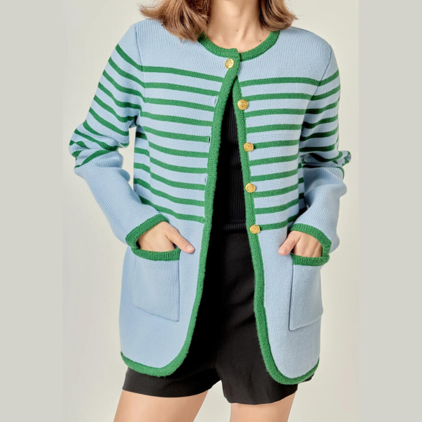 Knit Striped Sweater Cardigan