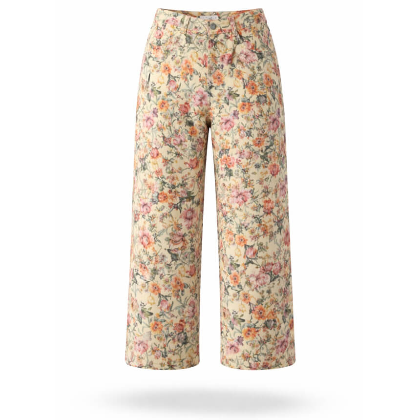 Pantalón de corte recto y silueta amplia con estampado floral estilo vintage en tonos suaves. Diseñado para un look femenino y sofisticado, ideal para elevar cualquier outfit con un toque chic y romántico.